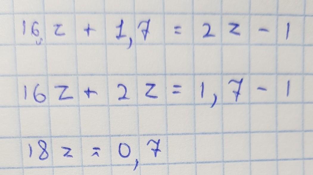 Если переносишь число в другую часть выражения, надо поменять знак, то есть если перед 2z стоял плюс, то в другой части уравн минус