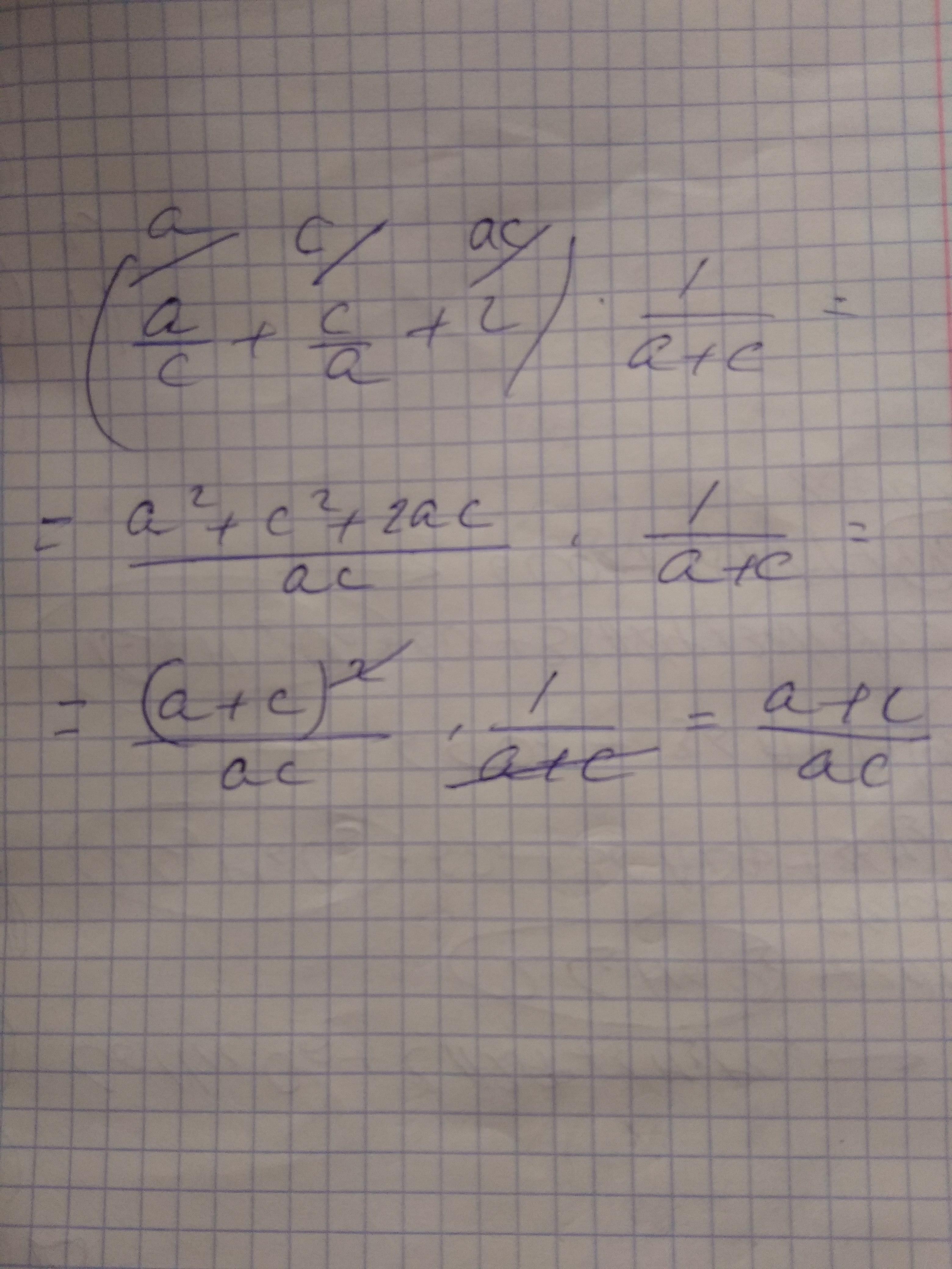 находим общий знаменатель в скобке, заметим, что в числителе формула сокращённого умножения, т.е квадрат суммы. и далее процесс сокращение.