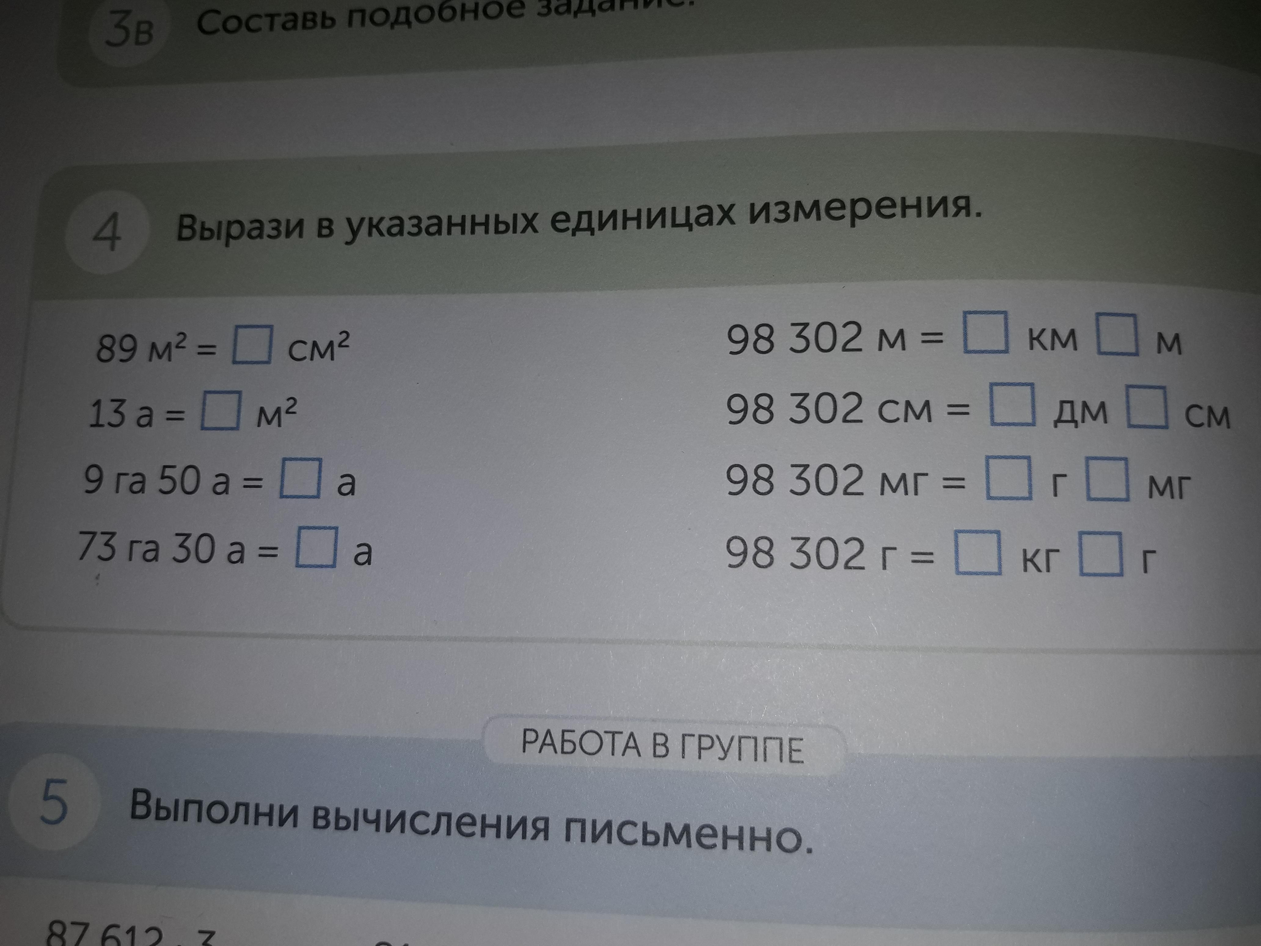 890000 см², 1300 м², 950 а, 7330 а, 98км302м, 9830дм2см, 98г302мг, 98кг302г