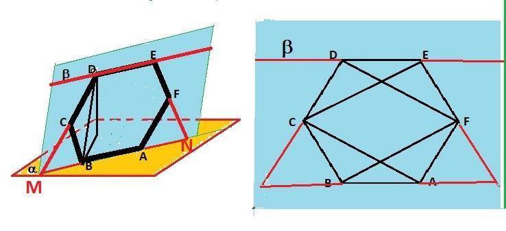 А теперь смотрим на этот ПРАВИЛЬНЫЙ шестиугольник сверху плоскости β.