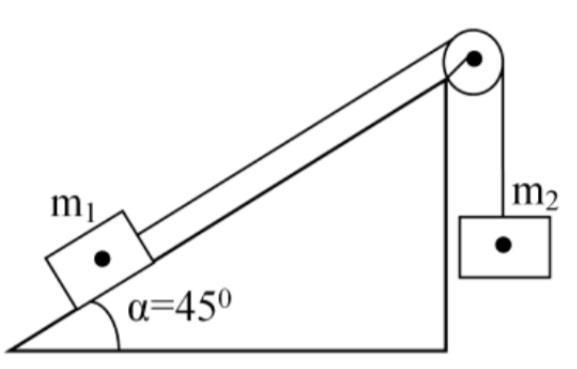 Тела массами m1 и m2 соединены невесомой и нерастяжимой