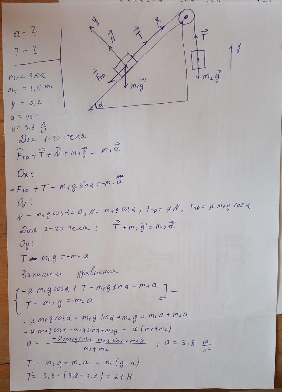 кг? Коэффициент трения груза m1 о плоскость равен μ=0,2. Чему