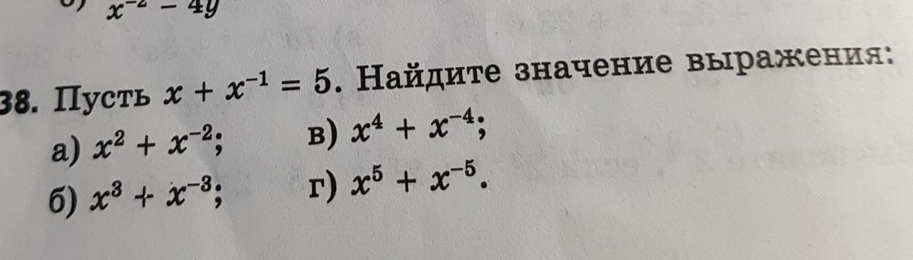 Помогите,пожалуйста пункт г). Очень срочно! Пусть х+х^-1=5. Найдите значение выражения: г) х^5+х^-5