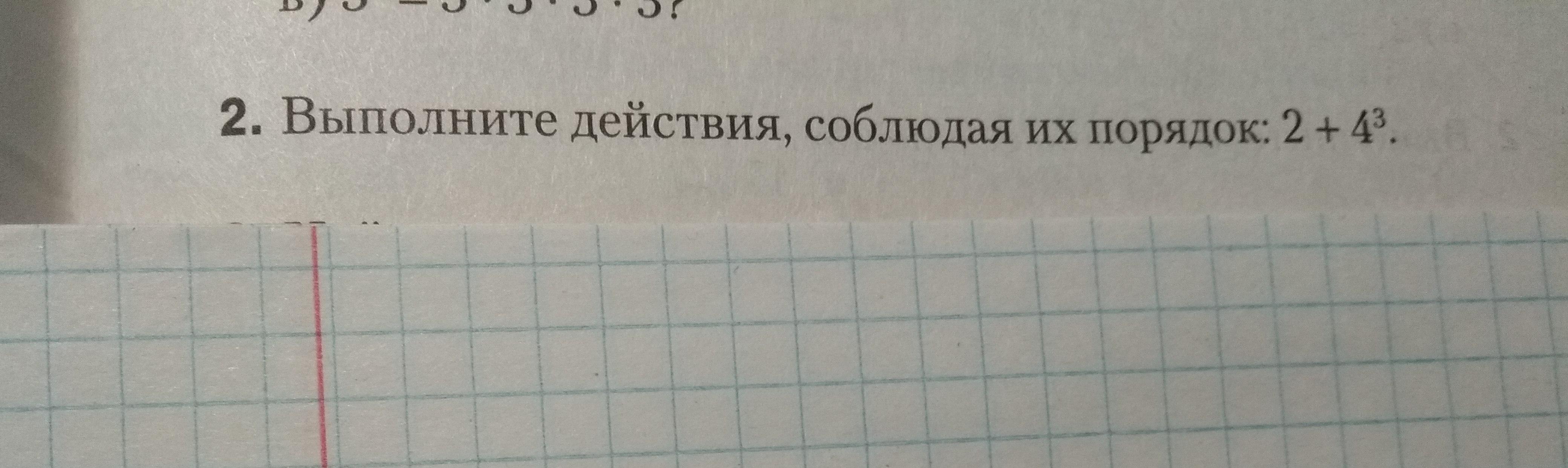 2 + 4 в 3 степени = 4 × 4 × 4 + 2 =16 × 4 +2 = 66