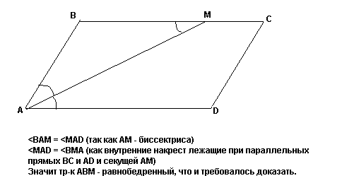 В параллелограмме ABCD биссектриса угла A пересекает сторону BC в точке М.