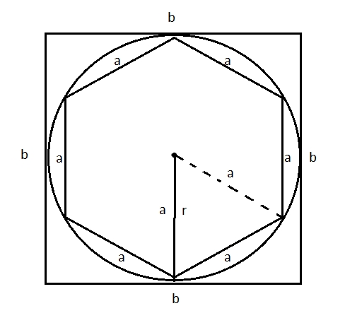 в круг вписан правильный шестиугольник со стороной 4 см. Найдите сторону квадрата описанного вокруг этого круга
