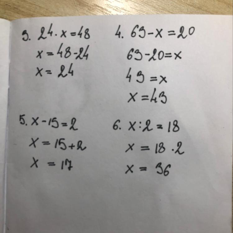 24*2=48, 63-43=20, 17-15=2, 36:2=18