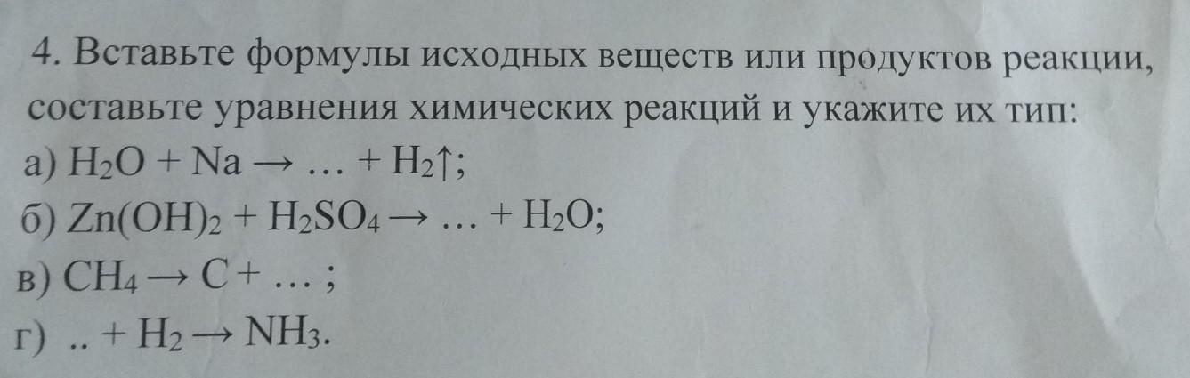 Вставьте формулы исходных веществ или продуктов реакции, составьте уравнения химических реакций и укажите их тип.