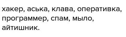 Тусовка, хакер ,аська ,общага ,дизайн, водила ,айтишник, облом, клава, материнка ,экран ,оперативка ,программер, мыло ,спам.
