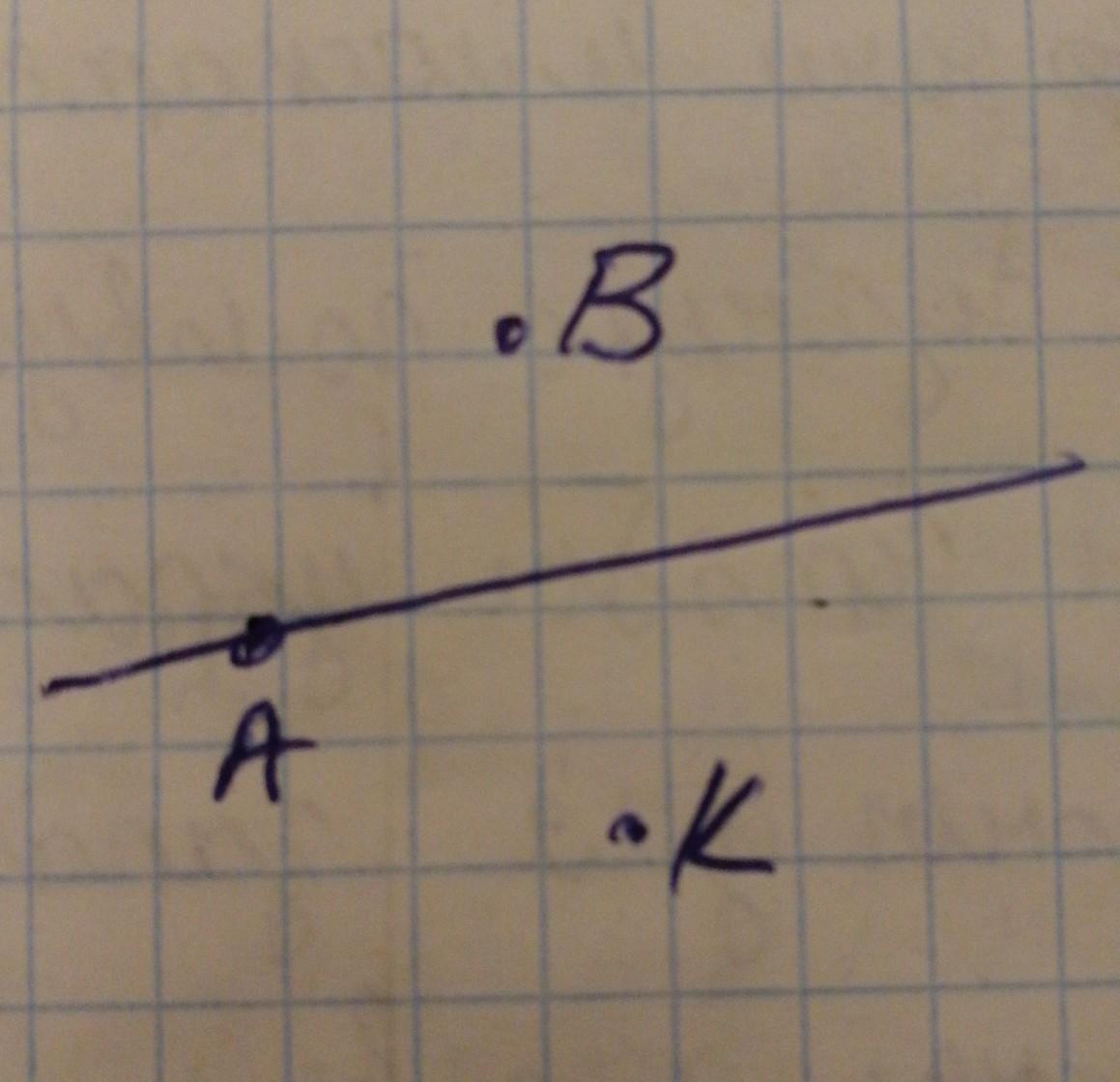 Проведите прямую линию отметьте точку А на этой прямой и точки B, К которые не лежат на этой прямой