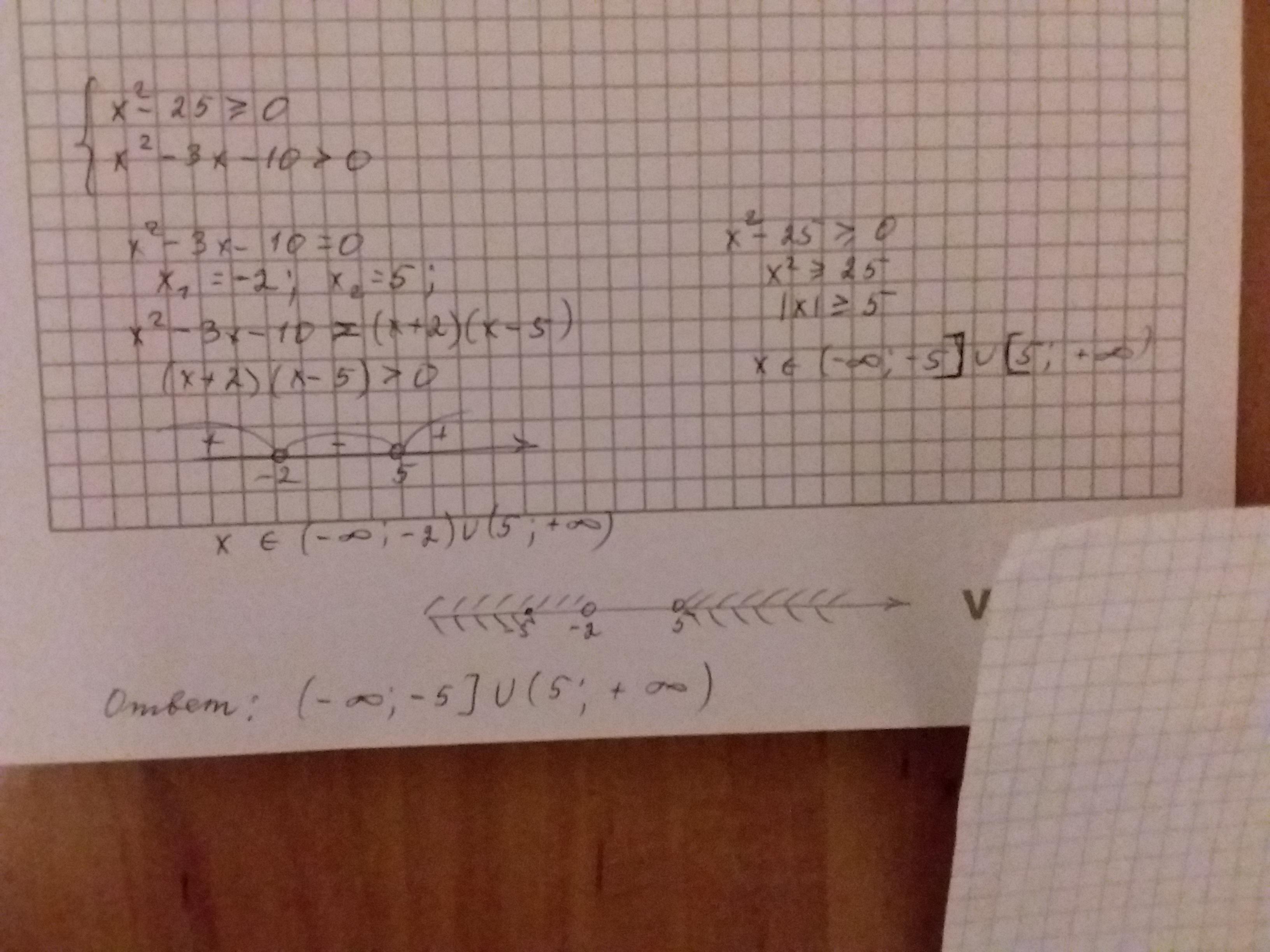 Ответ : x ∈ (- ∞ ; - 5] ∪ (5 ; + ∞)