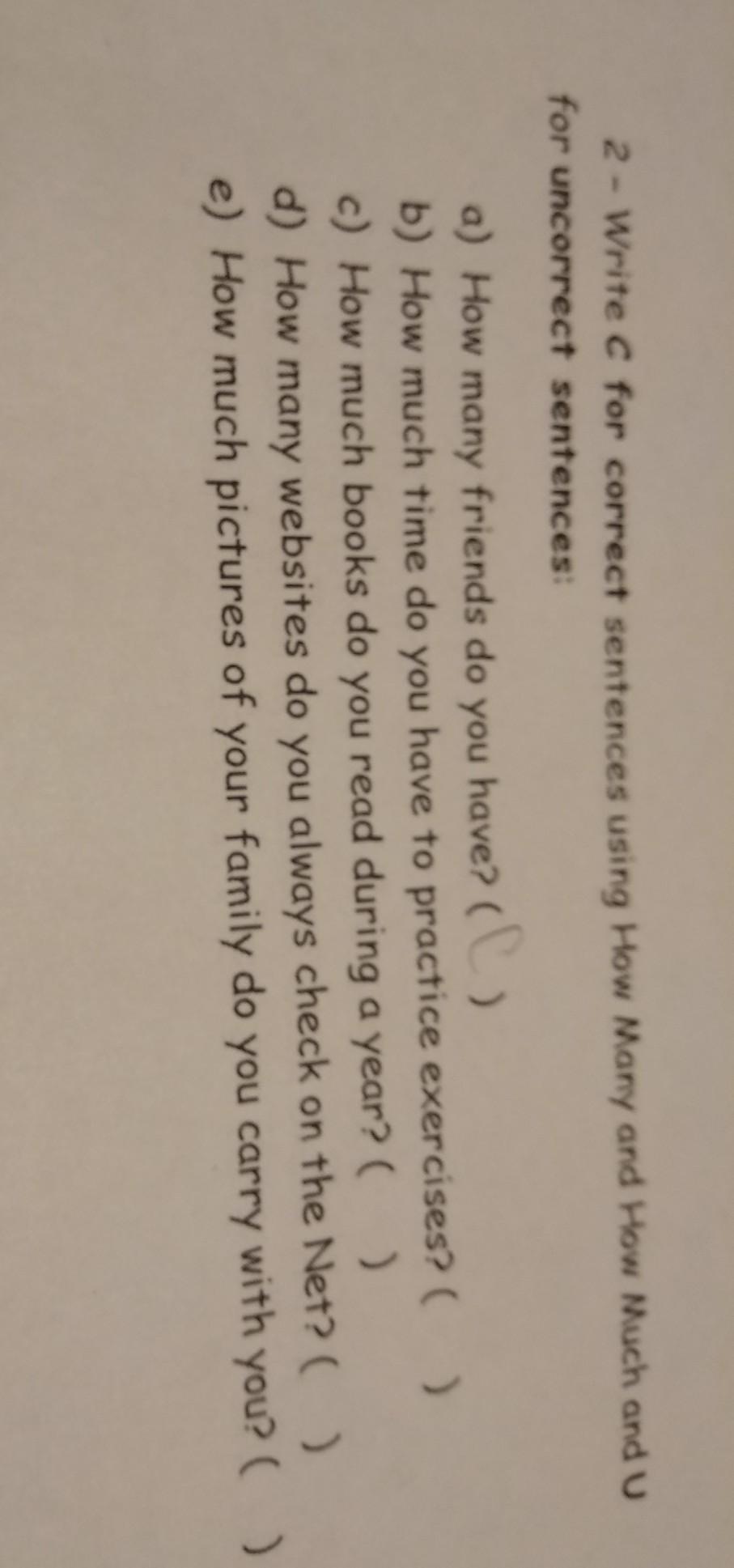 в этом задании надо написать правильное предложения с how many how much and incorrect sentences