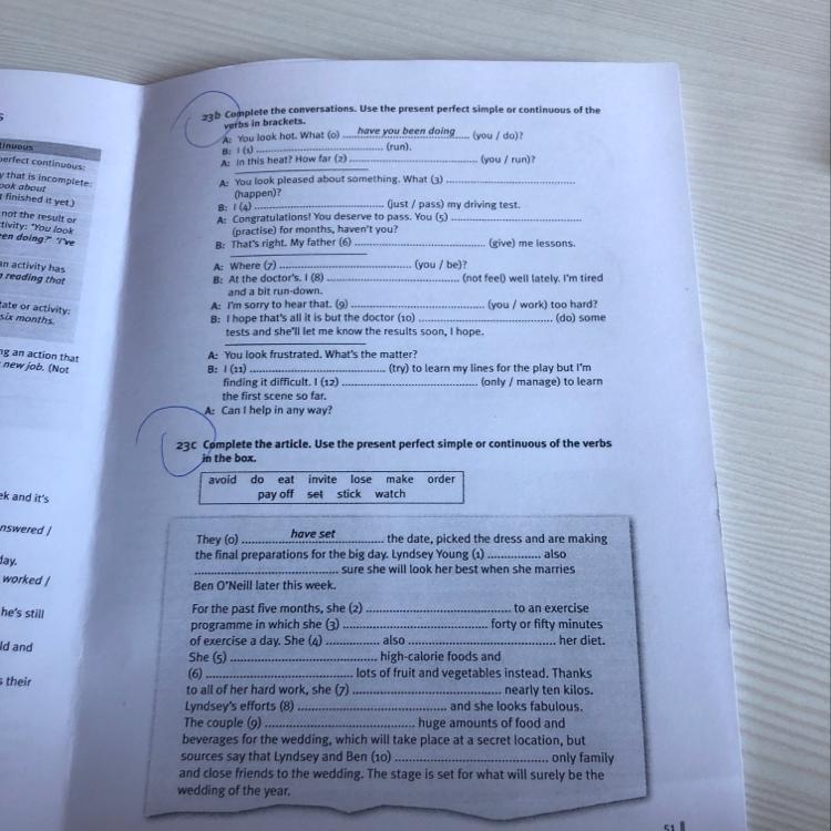 Complete the conversations. Use the present perfect simple or continuous of the vettis in brackets.