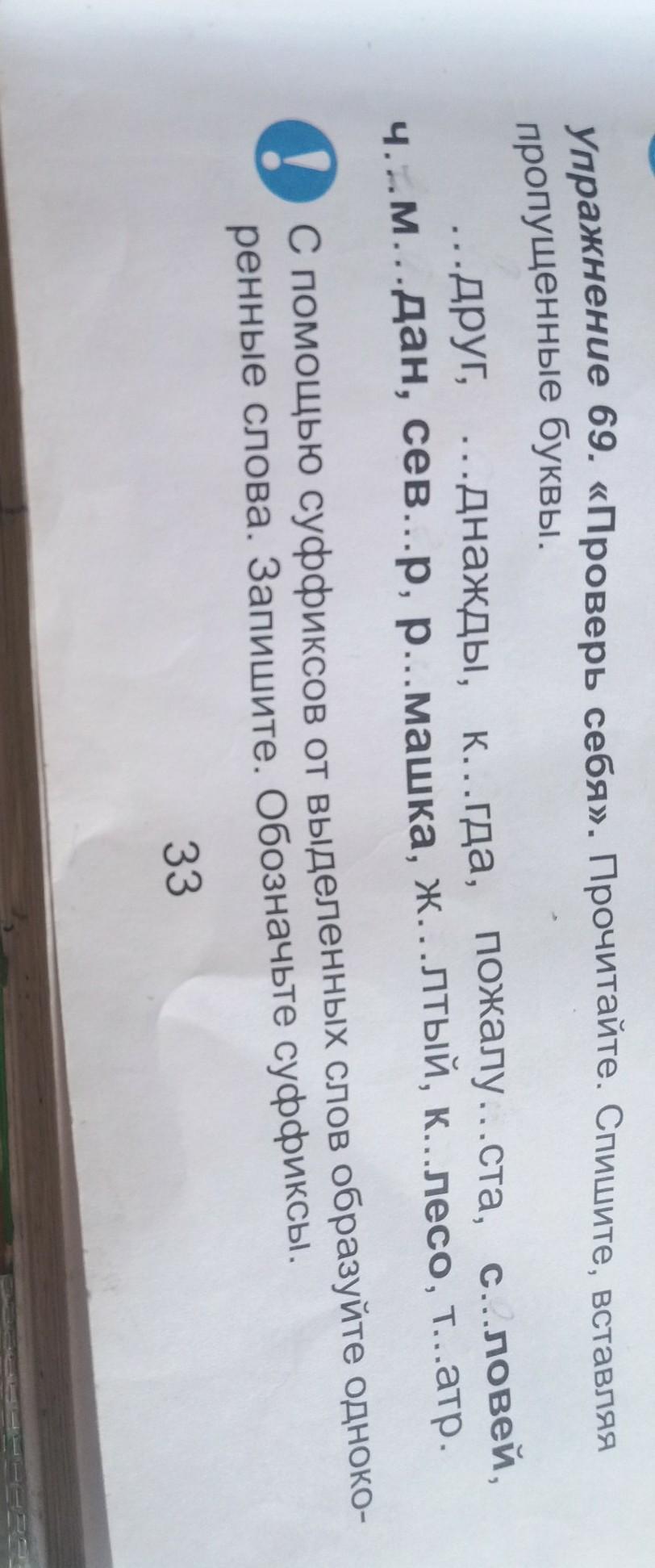 мнение 69. «Проверь себя». Прочитайте. Спишите, вставляя