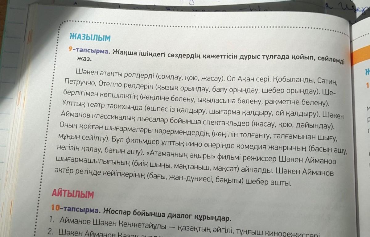 Жақша ішіндегі сөздердің қажеттісін дұрыс тұлғада қойып, сөйлемді