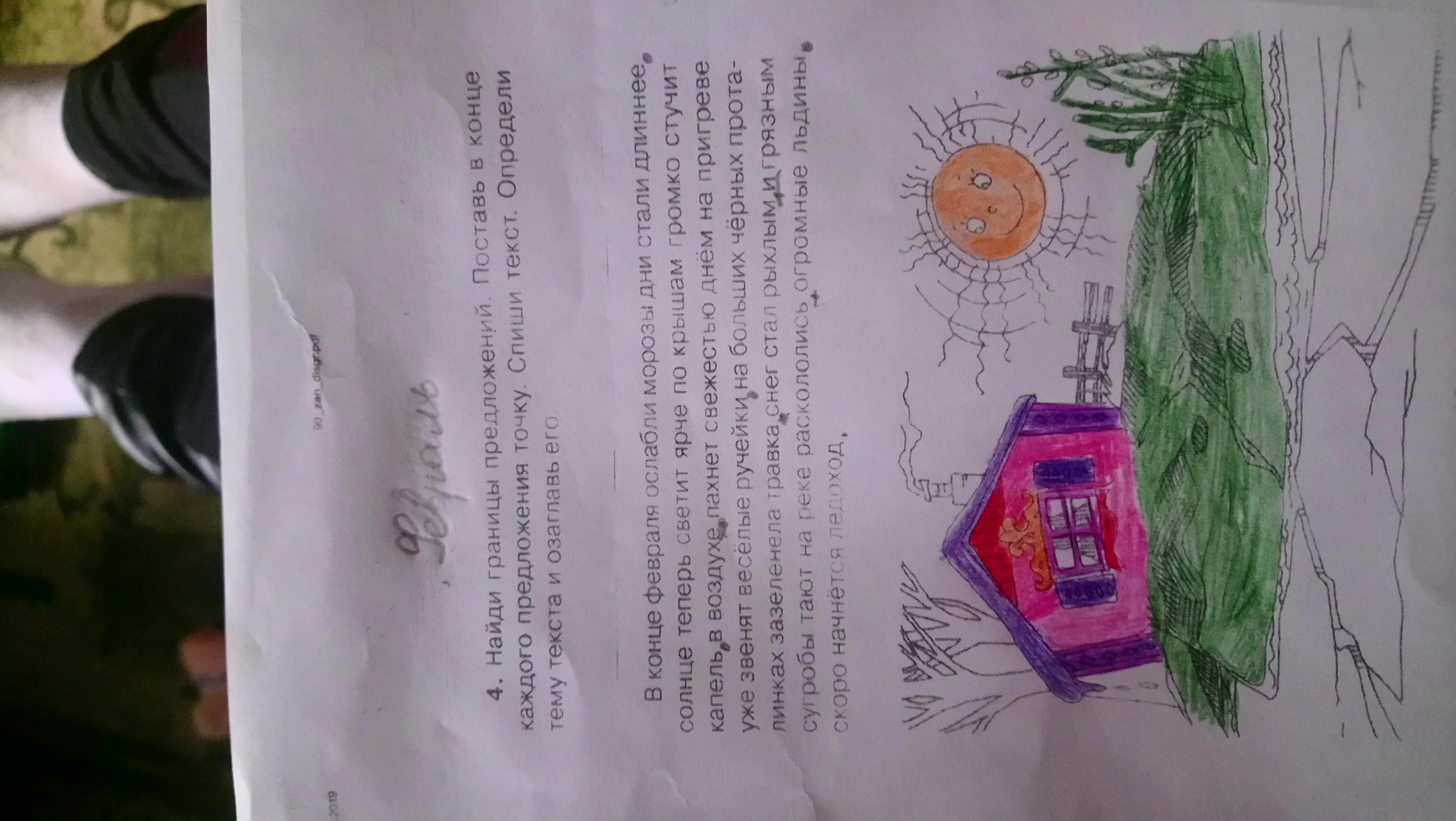 В конце февраля ослабли морозы.Дни стали длиннее. Солнце теперь светит ярче.По крышам громко стучит капель.В воздухе пахнет свежестью.Днем на пригреве уже звенят веселые ручейки.На больших черных проталинках зазеленела травка.Снег стал рыхлым и грязным.Сугробы тают на реке.Раскололись огромные льдины.Скоро начнется ледоход.