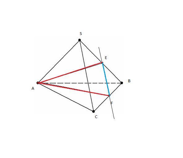 В треугольной пирамиде SABC с основанием АВС все ребра равны а. Постройте сечение пирамиды, проходящей через вершину А и середины рёбер SB и ВС.
