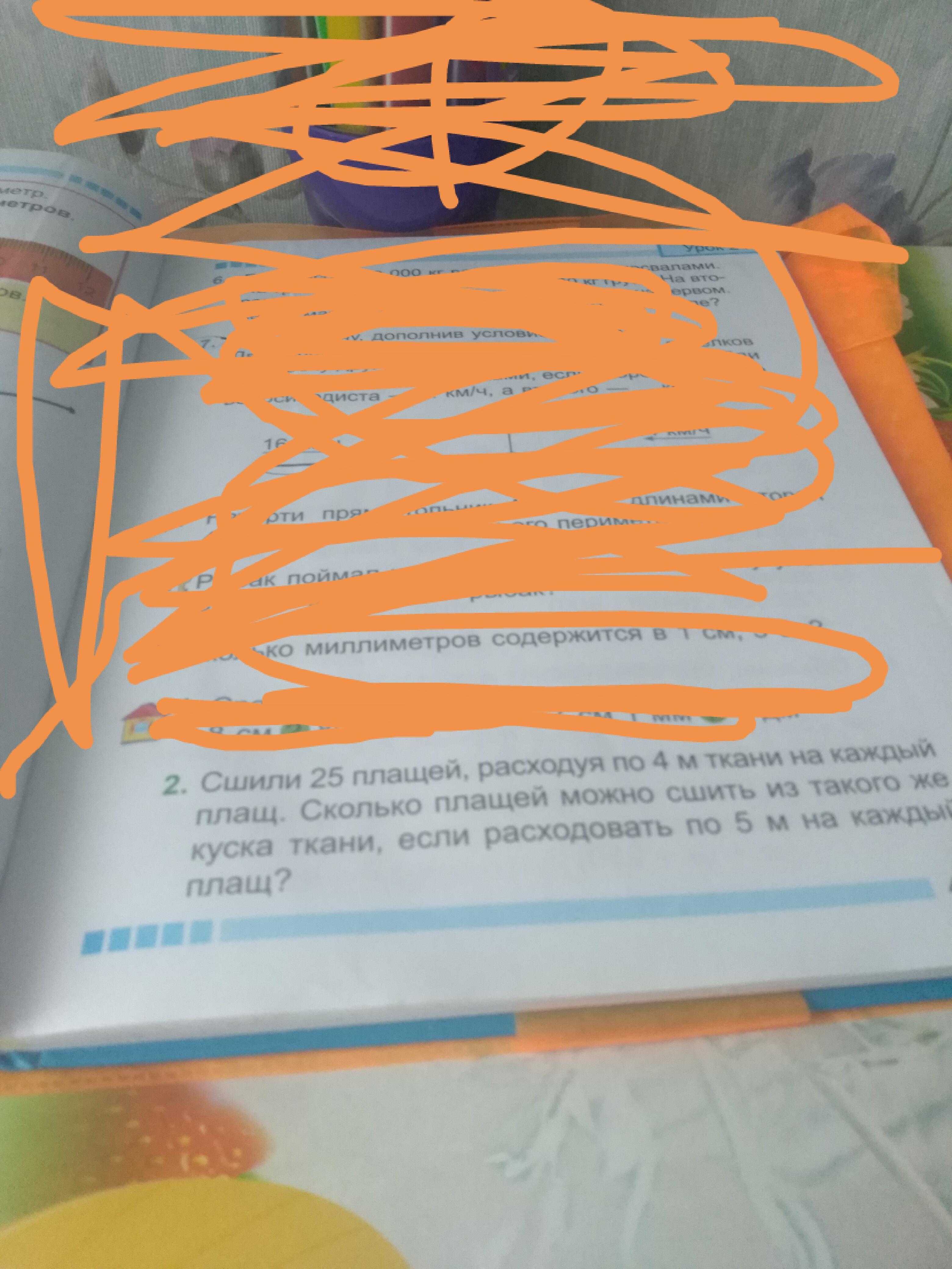 1)25×4=100м( мы узнали сколько метров ткани у нас есть)