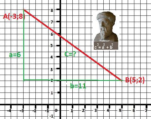 (АВ)² = (Ау - Ву)² + (Ах - Вх)² = (8-2)² + (8 - (-3)² =
