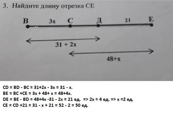 СЕ = CD +21 = 31 - x + 21 = 52 - 2 = 50 ед.