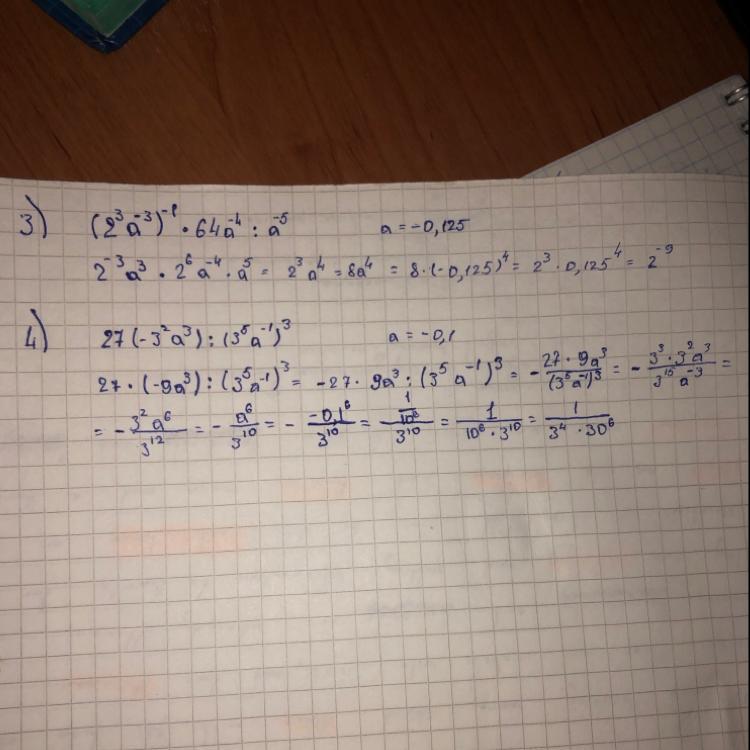 В ответе четвертого примера можешь дописать = 1/81•30 в 6 степени