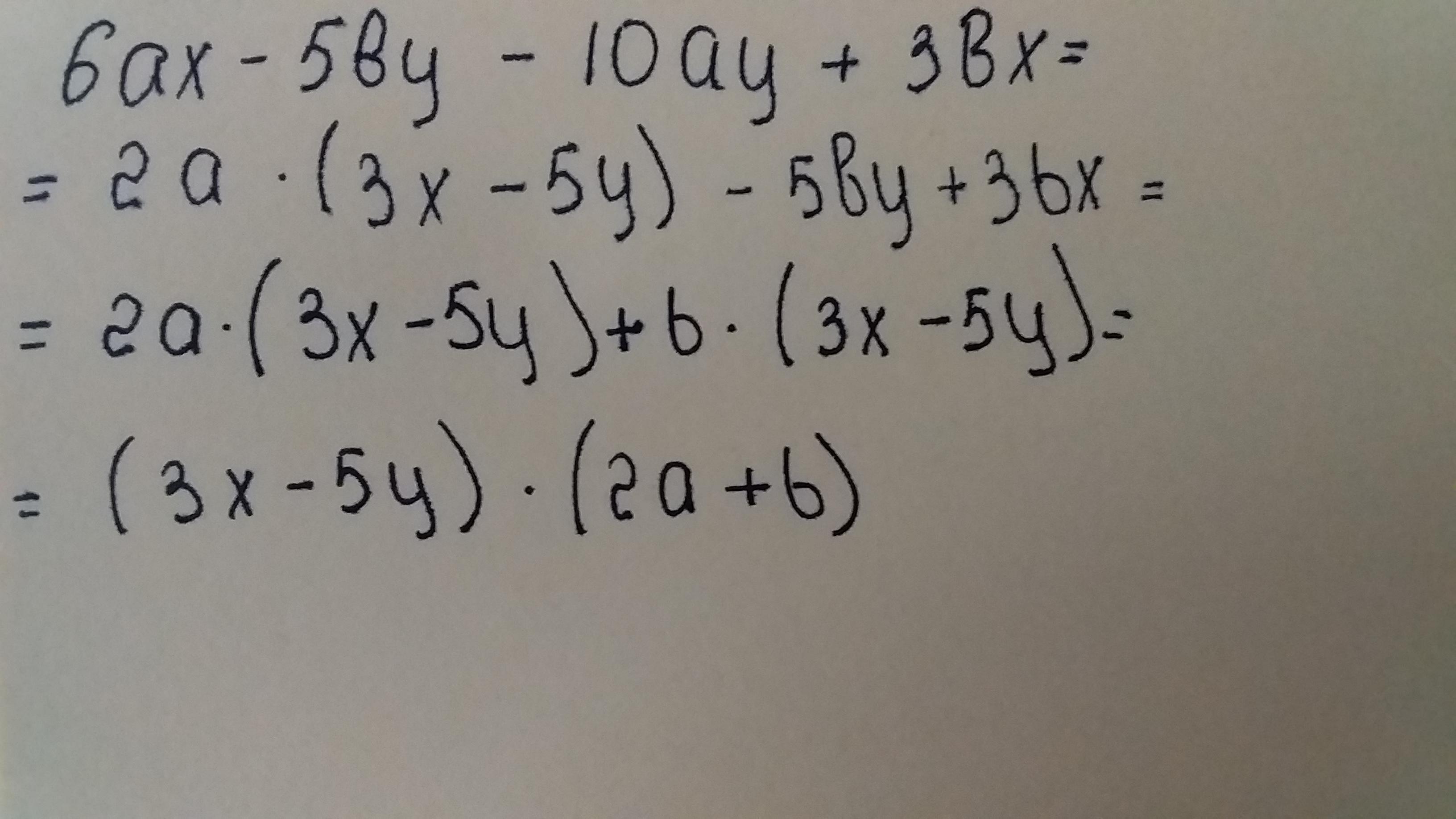 (6ax+3bx)-(10ay+5by)= 3x(2a+b)-5y(2a+b)=(3x-5y)(2a+b)