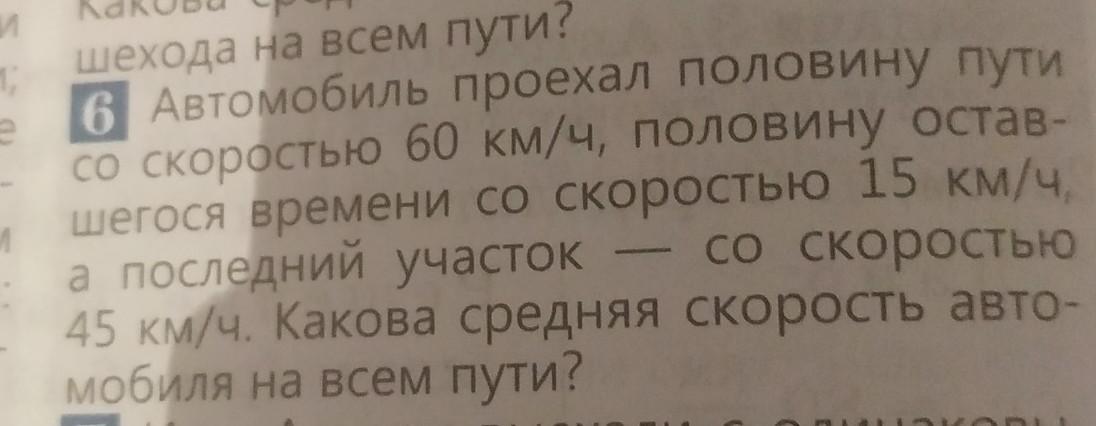 v cp= S/t=S/(t1+t2+t3)=S/(S/(2×v1)+S/60×(15+45)=(2×60+15+45)км/час=40км/час.