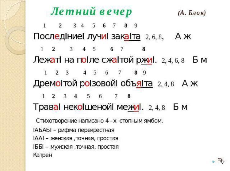 Выбрать из стихотворения 2 любых строчки и каждую расписать количество слогов,ударение,ямб или хорей определить по литературе 6 класс