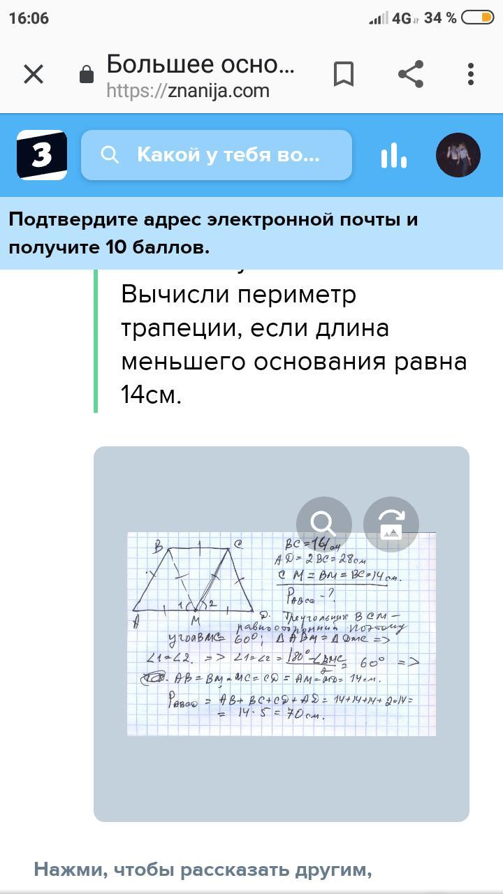 Вычисли периметр трапеции, если длина меньшего основания равна 17 см.
