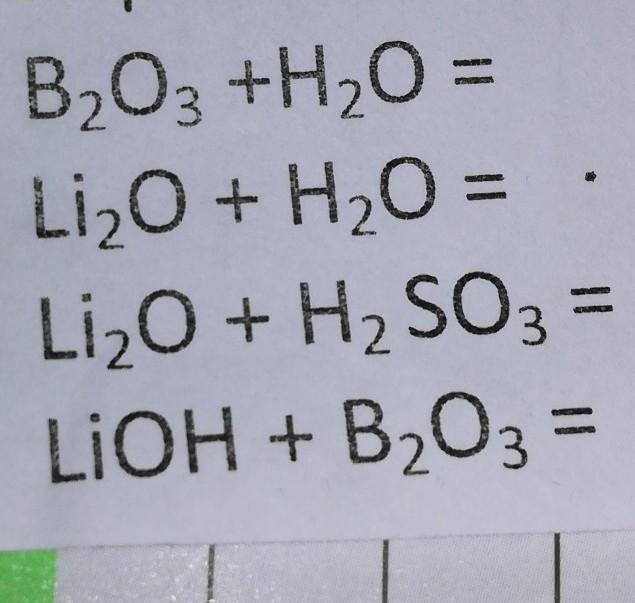 6LiOH + B₂O₃ = 2Li₃BO₃ + 3H₂O