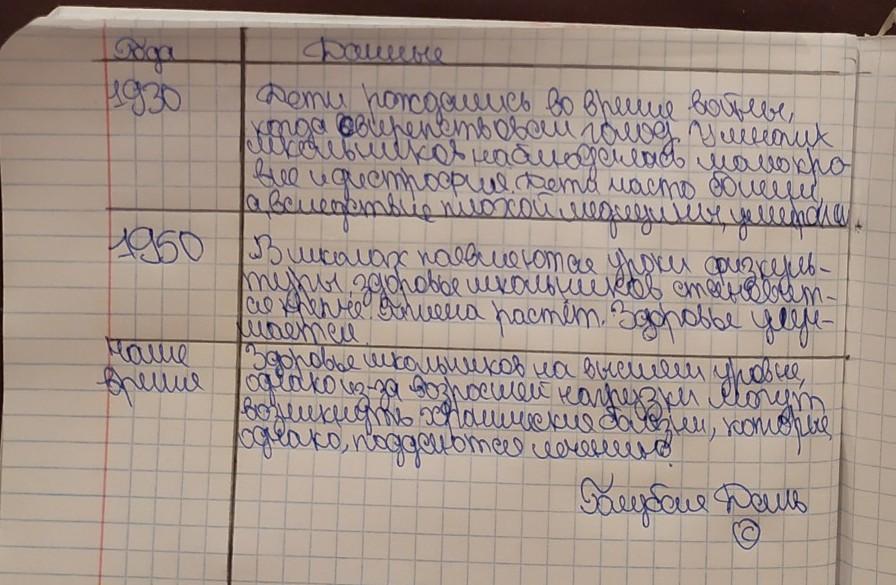 Используя ресурсы Интернета , приведите данные о состоянии здоровья современных школьников. Сравните их в таблице с данными в 1930-е и 1950-н гг.