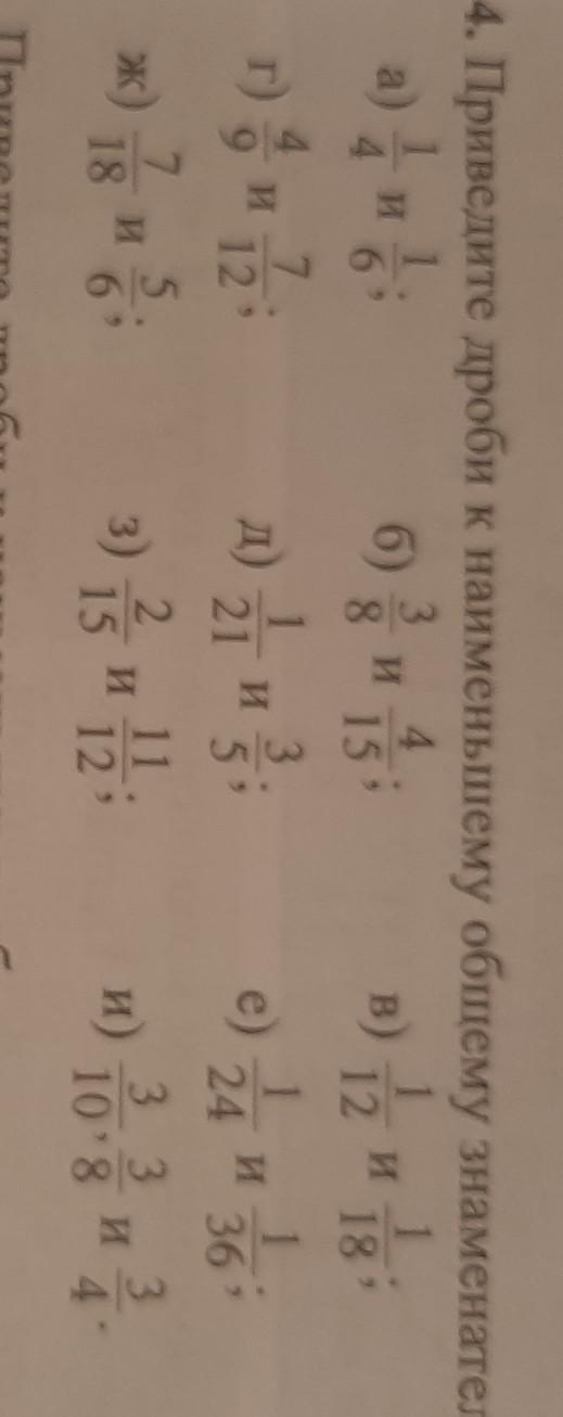 е)1/24×3 и 1/36×2= 3/72 и 2/72
