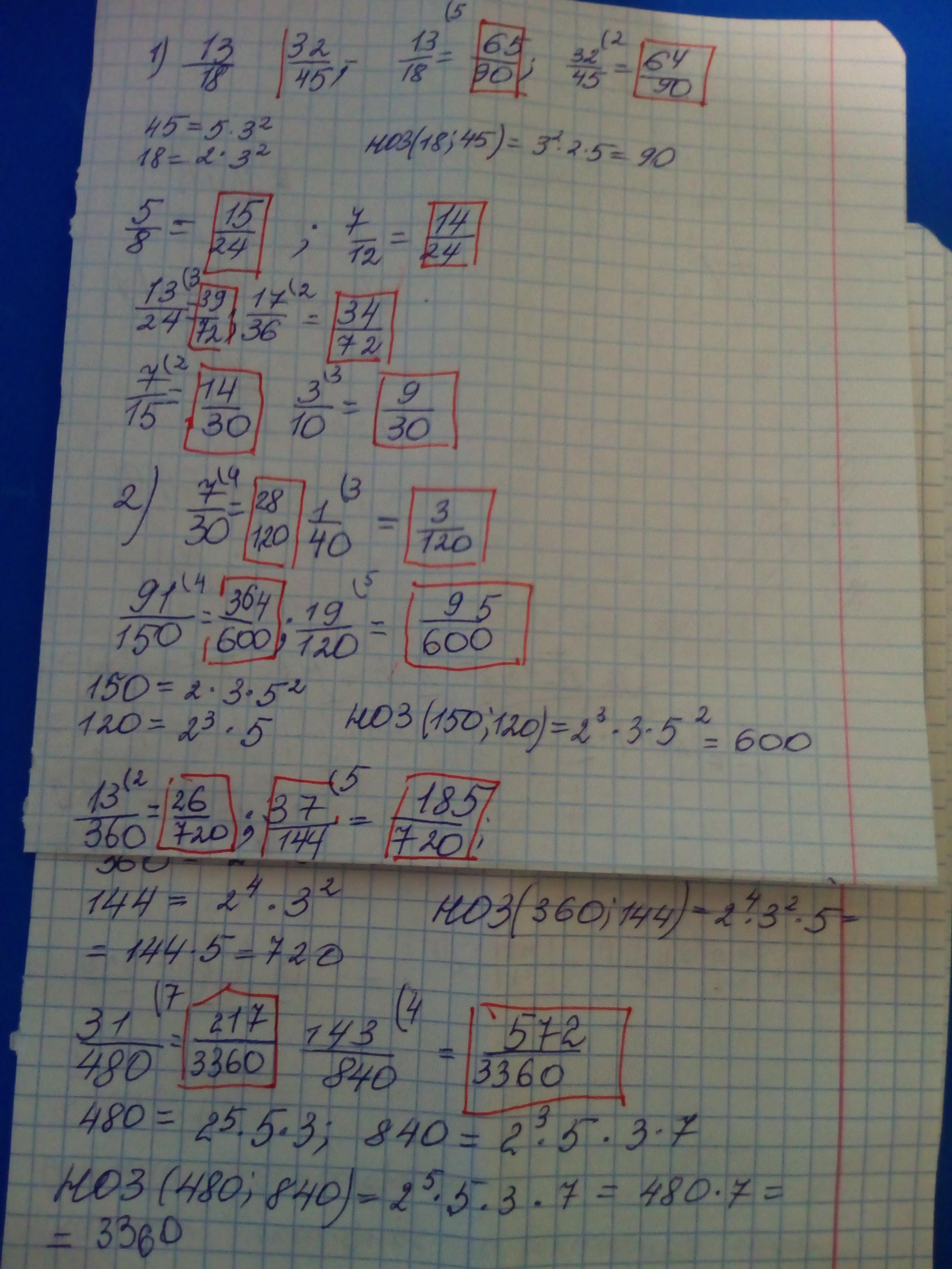 1) 13/18 и 32/45, 5/8 и 7/12, 13/24 и 17/36, 7/15 и 3/10