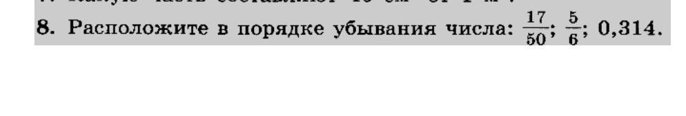 Раздели в столбик числа 5/6 и 17/50 потом расположили все числа в порядке возрастания