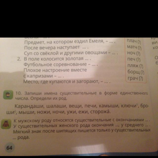 карандаш(м.р)шалаш(м.р)вещь(ж.р)печь(ж.р)камыш(м.р)ключ(м.р)брошь(ж.р)мышь(ж.р)нож(м.р)уж(м.р)ёж(м.р)сторож(м.р)