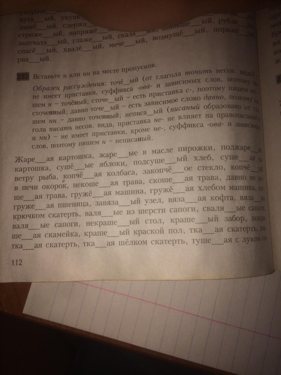 Жареная картошка, жаренные в масле пирожки, поджаренная картошка, сушеные яблоки, подсушенный хлеб, сушенная на ветру рыба, копченая колбаса, закопченное стекло, копченный в печи окорок, некошеная трава, скошенная трава, давно не кошенная трава, груженная машина, гружённая хлебом машина, погруженная пшеница, завязанный узел, вязаная кофта, вязанная крючком скатерть, валянные из шерсти сапоги, свалянные сапоги, валяные сапоги, некрашеный стол, крашеный забор, покрашенная скамейка, крашенный краской пол, тканая скатерть, вытканная скатерть, тканная шелком скатерть, тушенная с луком говядина, тушеная говядина, ношеные вещи, изношенные вещи, долго ношенные вещи, писаная красавица, писанный маслом портрет, исписанный лист, заплетенная коса, плетеная мебель, плетенный из прутьев, золоченые ложки, позолоченные ложки, соленные в банке грибы, недосоленная каша, соленые грибы, расплавленный металл, плавленый сыр, плавленный на сковороде.