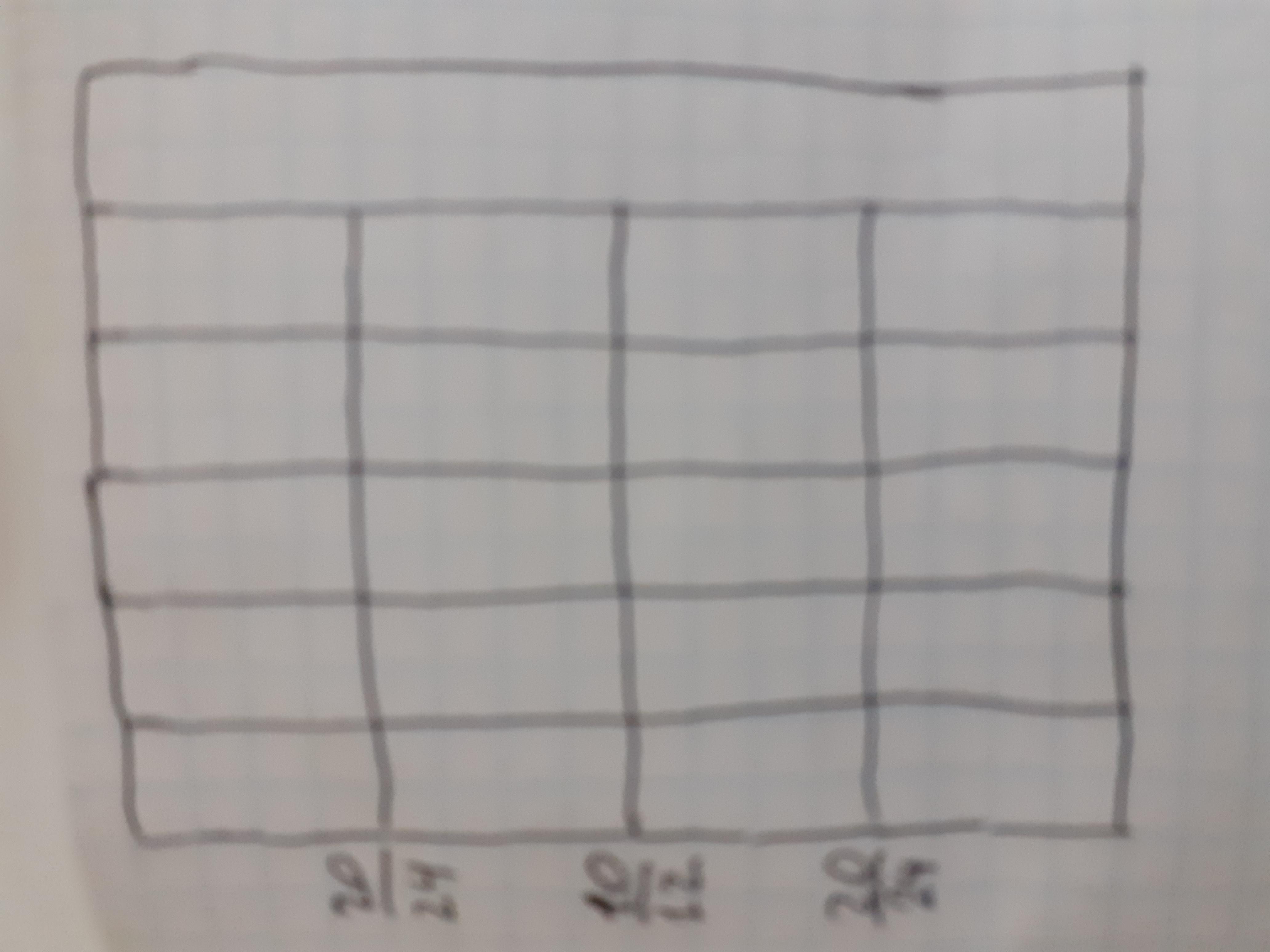 Делишь каждый сантиметр пополам и получаешь 10/12. Делишь ещё пополам, будет 20/24.