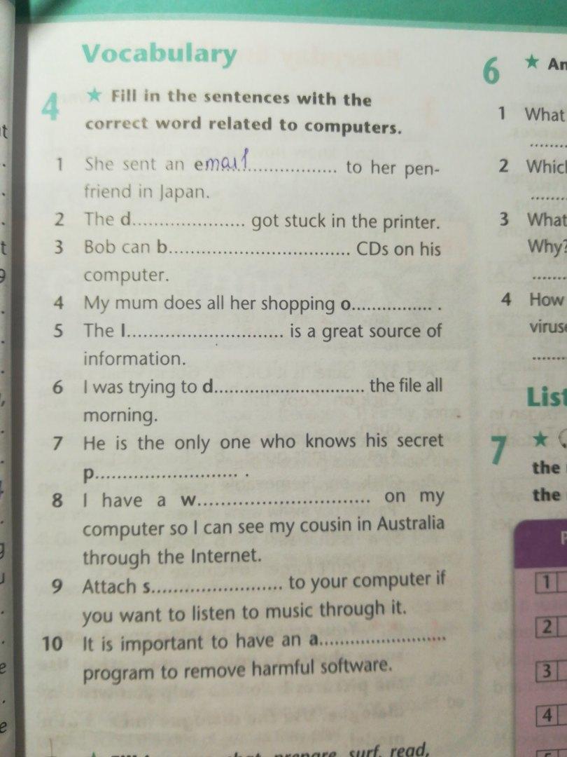 1 email 2 document 3 burn 4 online 5 Internet 6 delete 7 password 9 speakers 10 antivirus