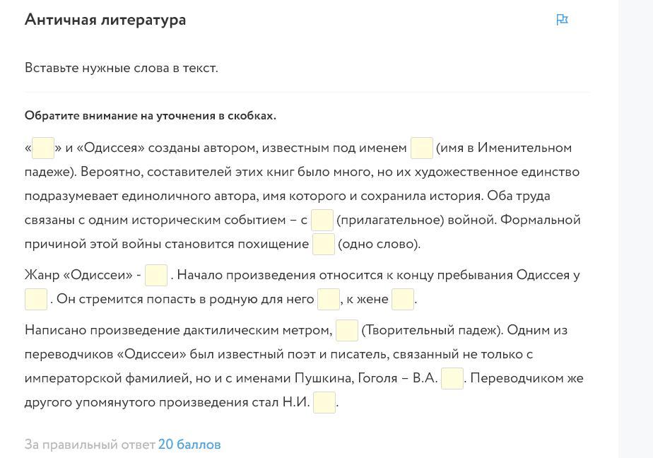 Ответ:Илиада, Гомер, Троянская, Жены(Елена Парисом)
