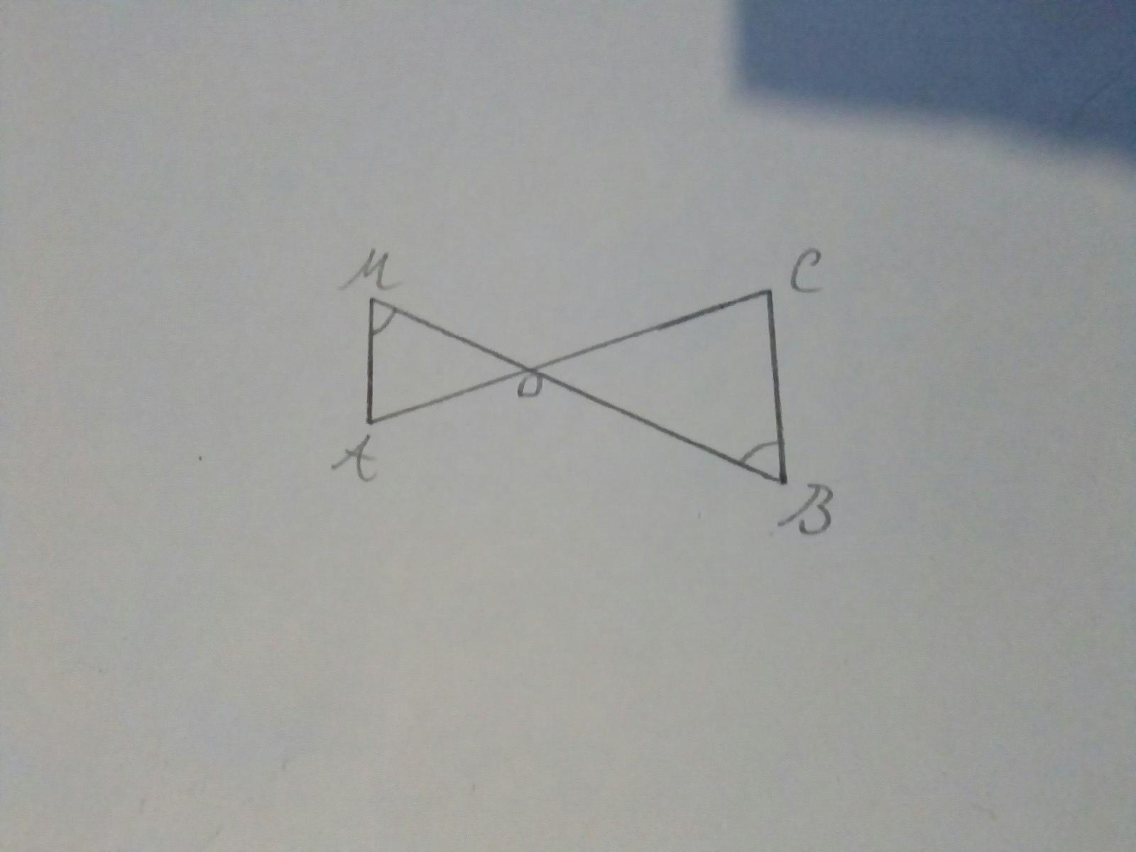 Да, будут подобными, по первому признаку подобия. т.е. по двум углам. углы М и В по условию равны, а углы МОА и СОВ как вертикальные равны.
