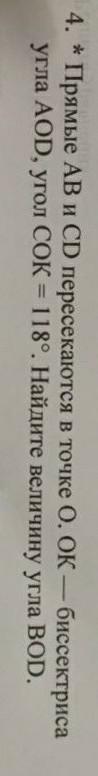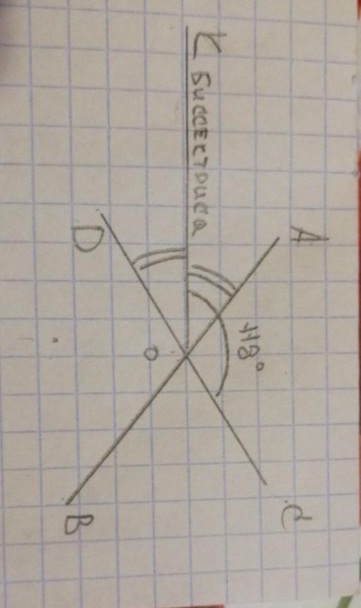 АОD биссектриса делит угол пополам значит KOD+AOK тогда АОD=KOD+AOK=62+62=124