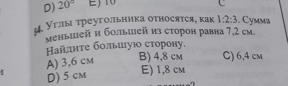 Поэтому гипотенуза равна гипотенуза +половина гипотенузы=7.2см