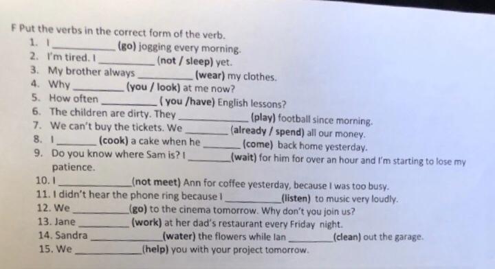 I go jogging every morning,My brother always wears my clothes,why are you looking at me now,How often do you have English lessons,The children are dirty. They have been playing football since morning,We can’t buy the tickets. We have already spent all our money,