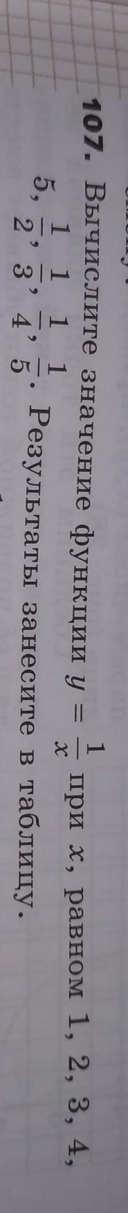 вычислите значение функции у = /1х при х, равном 1,2,3,4,5 и сделать ввиде таблицы с решением тоесть: у(1)=1/1=1