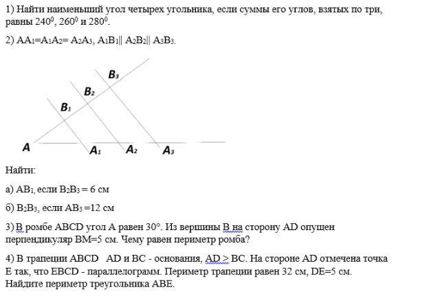 3) если опустить ⊥ ВМ из вершины В на сторону АД получим прямоугольный ΔАВМ, ВМ- противолежащий катет, АВ - гипотенуза, ∠А=30