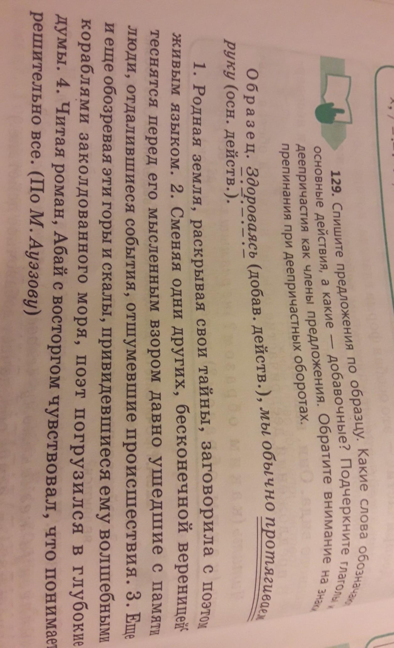 4. Читая роман(добавочное действие),Абай с восторгом чувствовал (основное действие),что понимает решительно все.