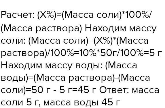 Масса раствора, находим массу соли (масса соли) =(Х%) масса раствора) 100%=10