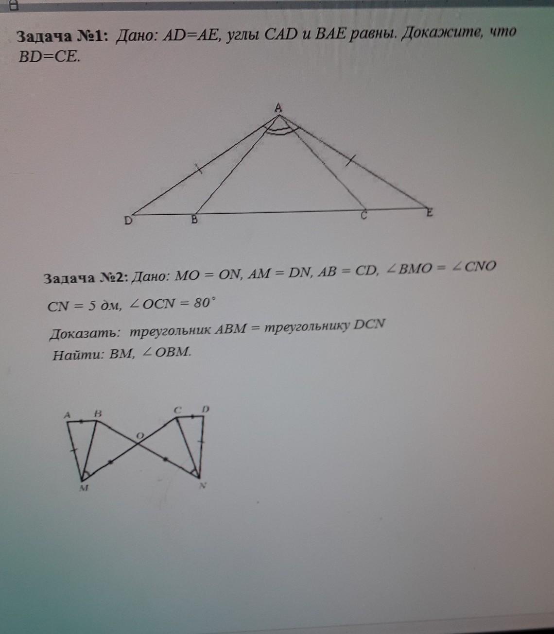 2. 1)Док-м, что треугольник BOM равен треугольнику CON: