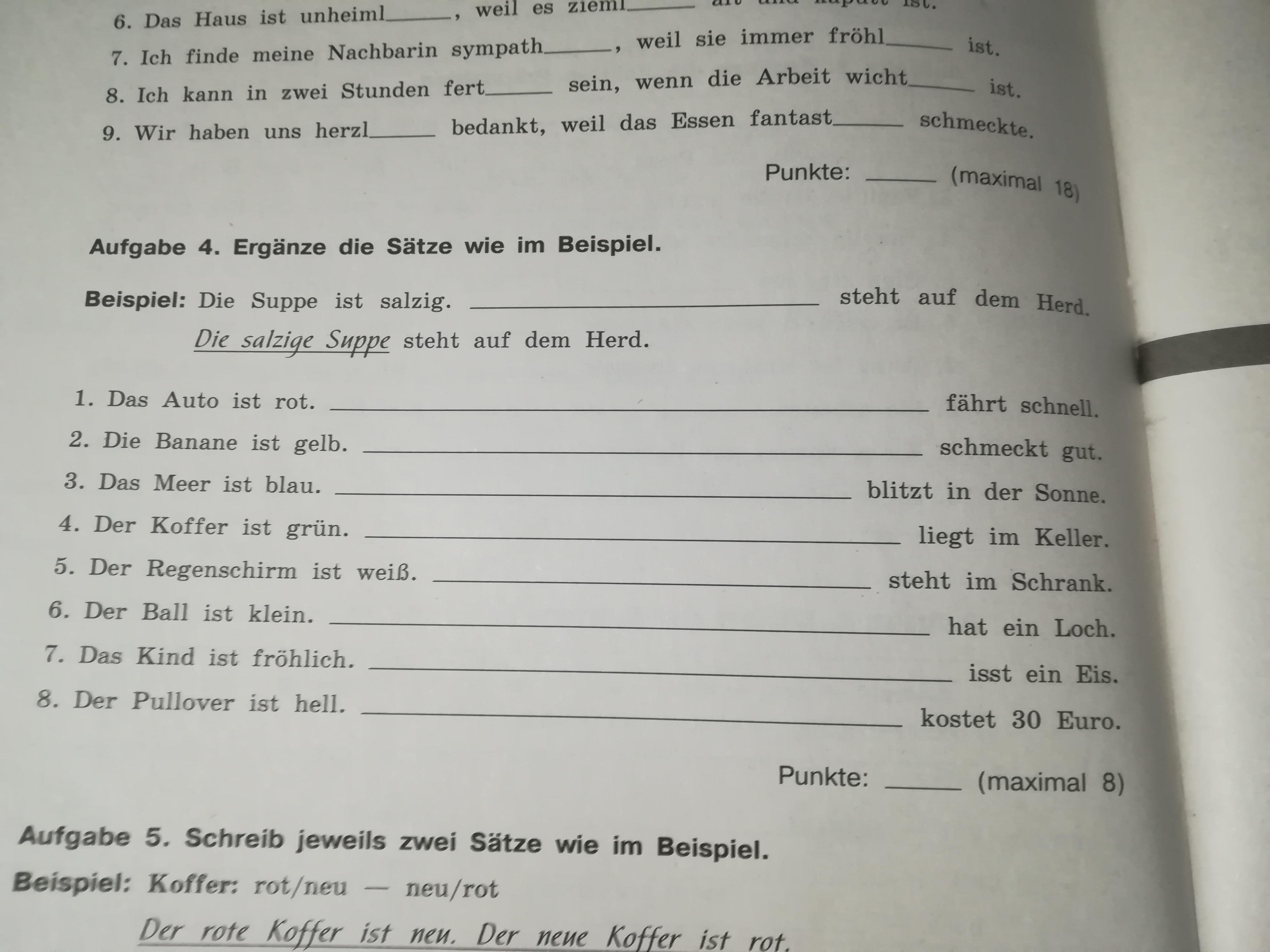 6)eine fette wurst, eine salzige wurst, eine scharfe wurst, eine kleine wurst