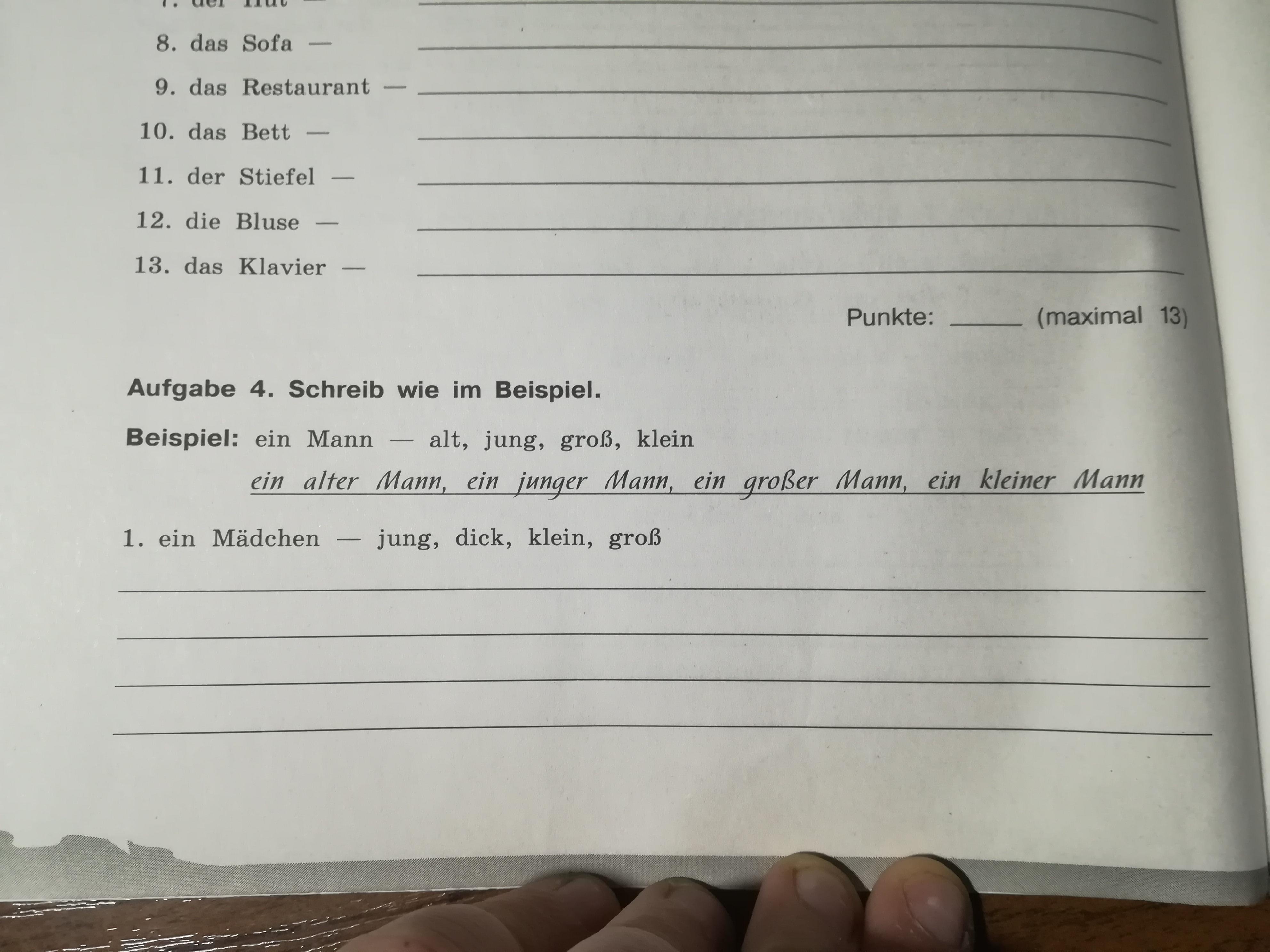 1) Ein junges mädchen, ein dickes mädchen,ein kleines mädchen, ein großes mädchen